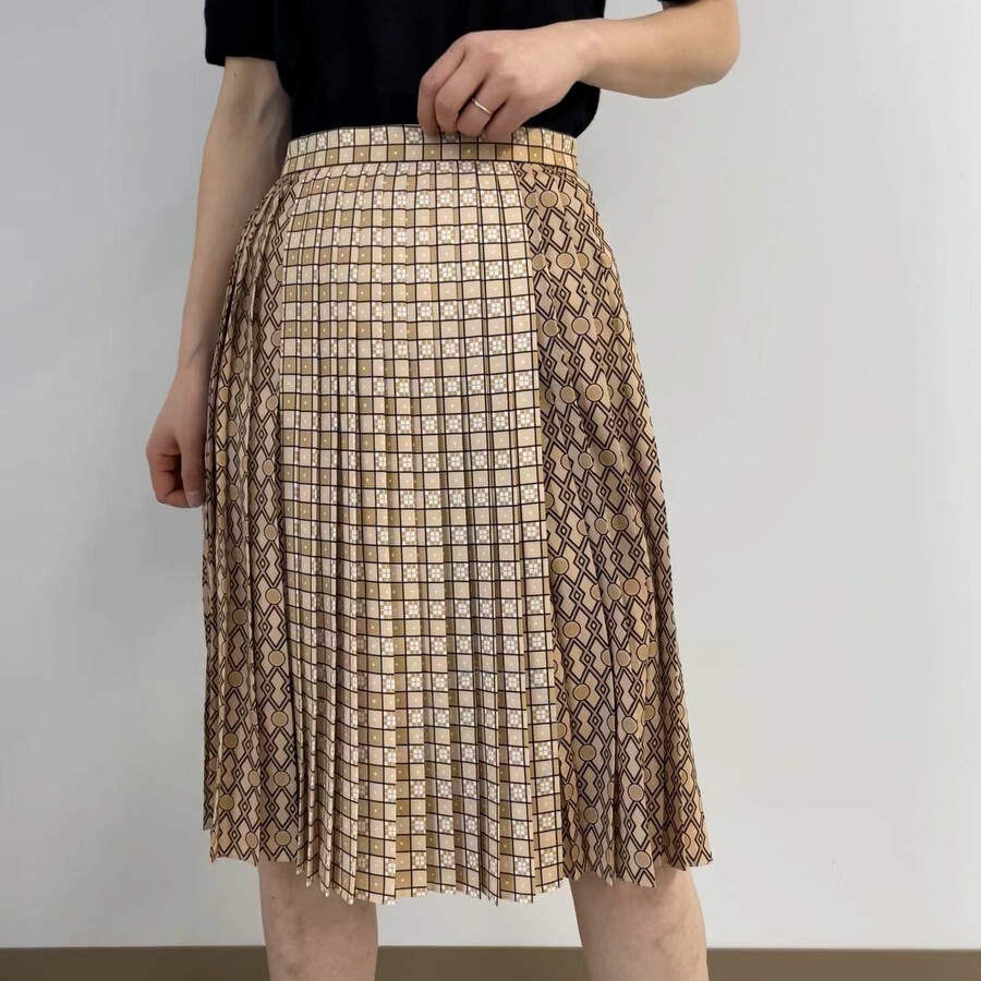 Burberry Ladies Bottoms. Fashion category: Skirts. SKU: 8016899. Color: Latte. Burberry Ladies Contrast Graphic Print Pleated Skirt. This Italian-made pleated skirt features a concealed side hook-and-eye and zip closure and panelled with contrasting graphic prints. Material: 100% polyester. Made in Italy. GENERAL Color: Latte INFORMATION Brand: Burberry Gender: Womens Model: 8016899 DETAILS Category: Bottoms Apparel Type: Skirts ADDITIONAL INFO Jomashop Sku: -8016899N Department: Apparel