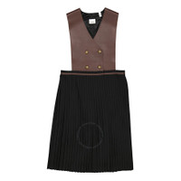 Burberry Ladies Dark Mocha Plonge Lambskin and Wool Blend Pinafore Dress