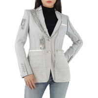Burberry Ladies Grey Melange Technical Linen Blazer with Crystal Embroidery, Brand Size 6 (US Size 4