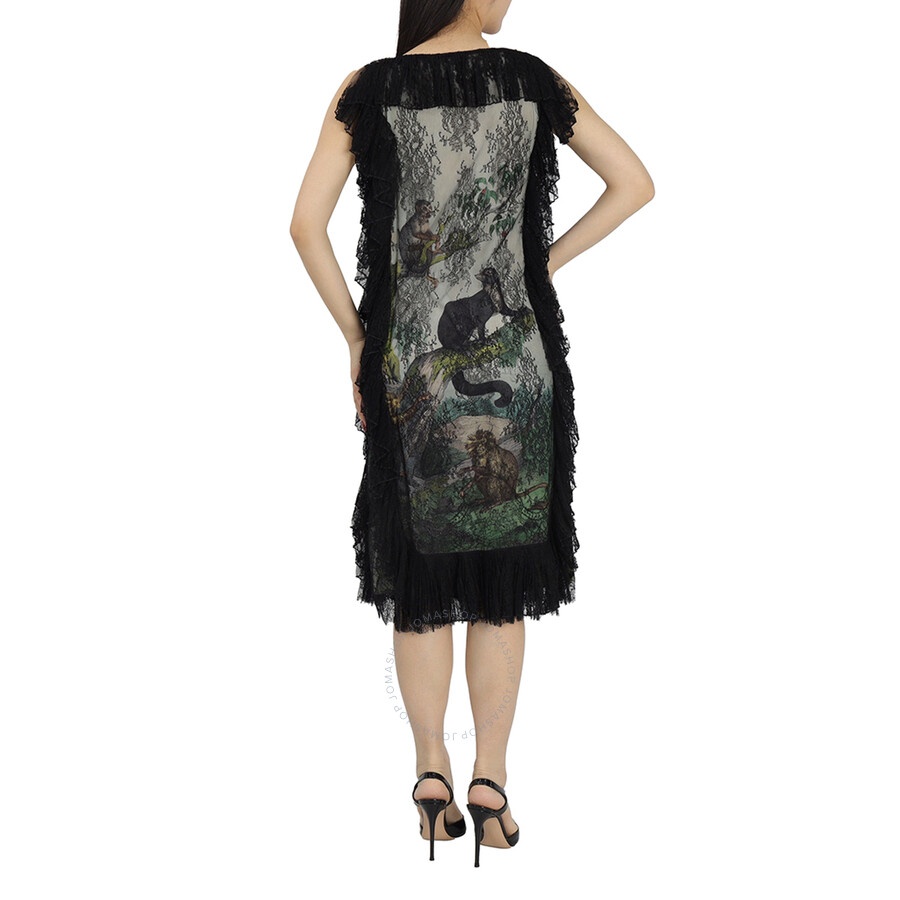 Burberry Ladies Dresses. Fashion category: Evening & Formal Gowns. SKU: 4564455. Color: Light Opal Green. Burberry Ladies Light Opal Green Chantilly Lace and Monkey Print Shift Dress. A shift dress in monkey-print silk crepe de chine, overlaid in ruffled Chantilly lace. The silhouette is finished with hand-enamelled chain straps. Made in Italy. GENERAL Color: Light Opal Green INFORMATION Brand: Burberry Gender: Womens Model: 4564455 DETAILS Category: Dresses Apparel Type: Evening & Formal Gowns ADDITIONAL INFO Jomashop Sku: -4564455N Department: Apparel