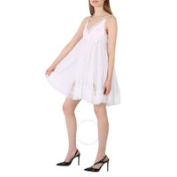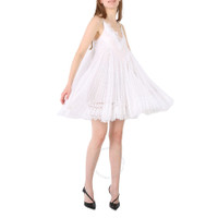 Burberry Ladies Optic White Fishnet And Lace Pleated Dress With Silk Slip
