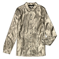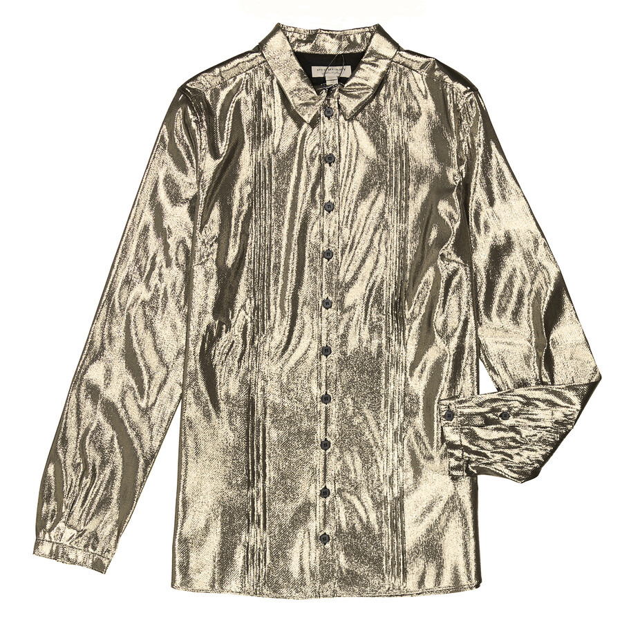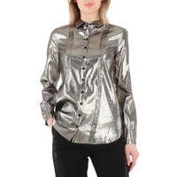 Burberry Ladies Tops. Fashion category: Shirts & Blouses. SKU: 4067521. Color: Silver. Burberry Ladies Pintuck Detail Silk Shirt. This shirt from Burberry features a point collar, front button fastening, long sleeves, button cuffs, front pleat accent and a slik blend metallic woven construction. Made in Italy. GENERAL Color: Silver INFORMATION Brand: Burberry Gender: Womens Model: 4067521 DETAILS Category: Tops Apparel Type: Shirts & Blouses ADDITIONAL INFO Jomashop Sku: -4067521N Department: Apparel