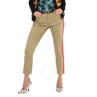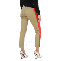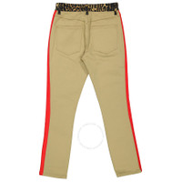Burberry Ladies Bottoms. Fashion category: Jeans & Denim. SKU: 8024583. Color: Rich Olive. Burberry Ladies Rich Olive Skinny Fit Leopard Print Japanese Jeans. A pair of stretch cotton jeans featuring a mid-rise, a five pocket design, belt loops, a button and zip fastening, a skinny fit, contrasting red stripes to the side and finished with a leopard print detail to the waist. Cotton 98%, Spandex/Elastane 2% GENERAL Color: Rich Olive INFORMATION Brand: Burberry Gender: Womens Model: 8024583 DETAILS Category: Bottoms Apparel Type: Jeans & Denim ADDITIONAL INFO Jomashop Sku: -8024583N Department: Apparel