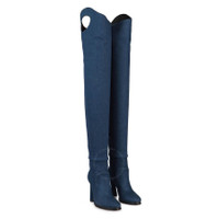 Burberry Ladies Shoreditch Denim Blue Porthole Detail Over-The-Knee Boots