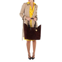 Burberry Ladies Tote. SKU: 8075550. Color: Cocoa. Size: 43cm x 18cm x 38cm. Burberry Suede Medium Shield Top Handles Tote. This softly structured tote, made in Italy from calf suede, features smooth leather trimming and shield-shaped side panels. It includes a detachable bell charm, gold-tone hardware, an open top, two adjustable top handles, and a spacious main compartment. Outer: 100% calf suede; Inner: 100% calf leather; Trim: 100% calf leather. Made in Italy. GENERAL Size Info: 43cm x 18cm x 38cm Color: Cocoa Lining Material: Calfskin INFORMATION Brand: Burberry Gender: Womens Model: 8075550 DETAILS Material: Calf Suede, Calf Leather ADDITIONAL INFO UPC Code: 5045704469352 Jomashop Sku: Z-WXTJ8 Department: Bags Category: Tote Bags