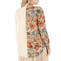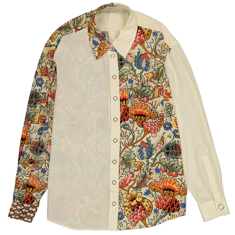 Burberry Ladies Vanilla Juliette Floral-print Paneled Silk Oversized Shirt