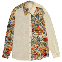 Burberry Ladies Tops. Fashion category: Shirts & Blouses. SKU: 8017057. Color: Vanilla. Burberry Ladies Vanilla Juliette Floral-print Paneled Silk Oversized Shirt. An oversized silk shirt designed with floral-print panels, this shirt features a classic collar, a snap fastening and long sleeves. Cotton 100% Dry Clean Only. GENERAL Color: Vanilla INFORMATION Brand: Burberry Gender: Womens Model: 8017057 DETAILS Category: Tops Apparel Type: Shirts & Blouses ADDITIONAL INFO Jomashop Sku: -8017057N Department: Apparel