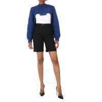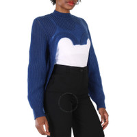 Burberry Ladies Warm Royal Blue Cut-Out Knit Technical Reconstructed Sweater