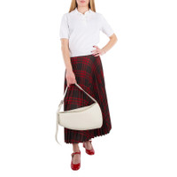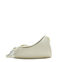Burberry Ladies Shoulder Bag. SKU: 8086480. Barcode: 5045705881740. Color: Almond. Size: 13.2 x 6.3 x 7.9in. Burberry Large Leather Horn Bag in Almond. This shoulder bag is crafted from grainy leather with an embossed check lining. Its conical shape curves to fit the body and features a brushed metal Knight buckle for adjustable strap length. Embellished with the signature Equestrian Knight motif, the bag also includes a foldover top with a magnetic fastening and a spacious main compartment. The adjustable shoulder strap ensures comfort, and it is proudly made in Italy. GENERAL Size Info: 13.2 x 6.3 x 7.9in Color: Almond INFORMATION Brand: Burberry Gender: Womens Model: 8086480 DETAILS Material: Leather Closure: Flap ADDITIONAL INFO UPC Code: 5045705881740 Jomashop Sku: Z-VYWT6 Department: Bags Category: Shoulder Bag