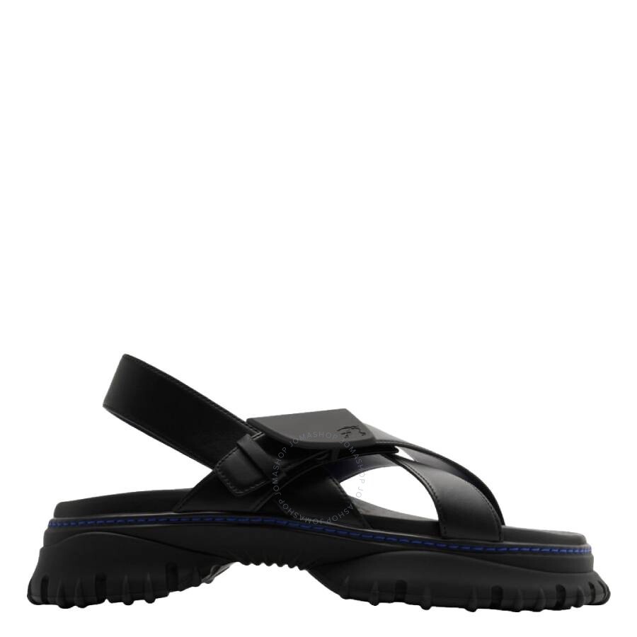 Burberry Men's Sandals. SKU: 8090290. Color: Black. Burberry Leather Pebble Sandals. These Italian-made sandals are crafted from leather and set on a chunky molded sole for added comfort and style. The adjustable straps feature brushed metal shield buckles, each embossed with the iconic Equestrian Knight design. The sandals have a rounded toe and a distinctive Equestrian Knight design at the sole, adding a unique touch to their bold, modern aesthetic. 100% leather. Made in Italy. Please visit the brand website for sizing information. GENERAL Brand Type: Designer INFORMATION Brand: Burberry Model: 8090290 Gender: Mens DETAILS Category: Sandals Color: Black Shoe Vamp Style: Slip-on Upper Material: Leather Sole Material: EVA/Rubber ADDITIONAL INFO Jomashop Sku: -8090290N Department: Shoes