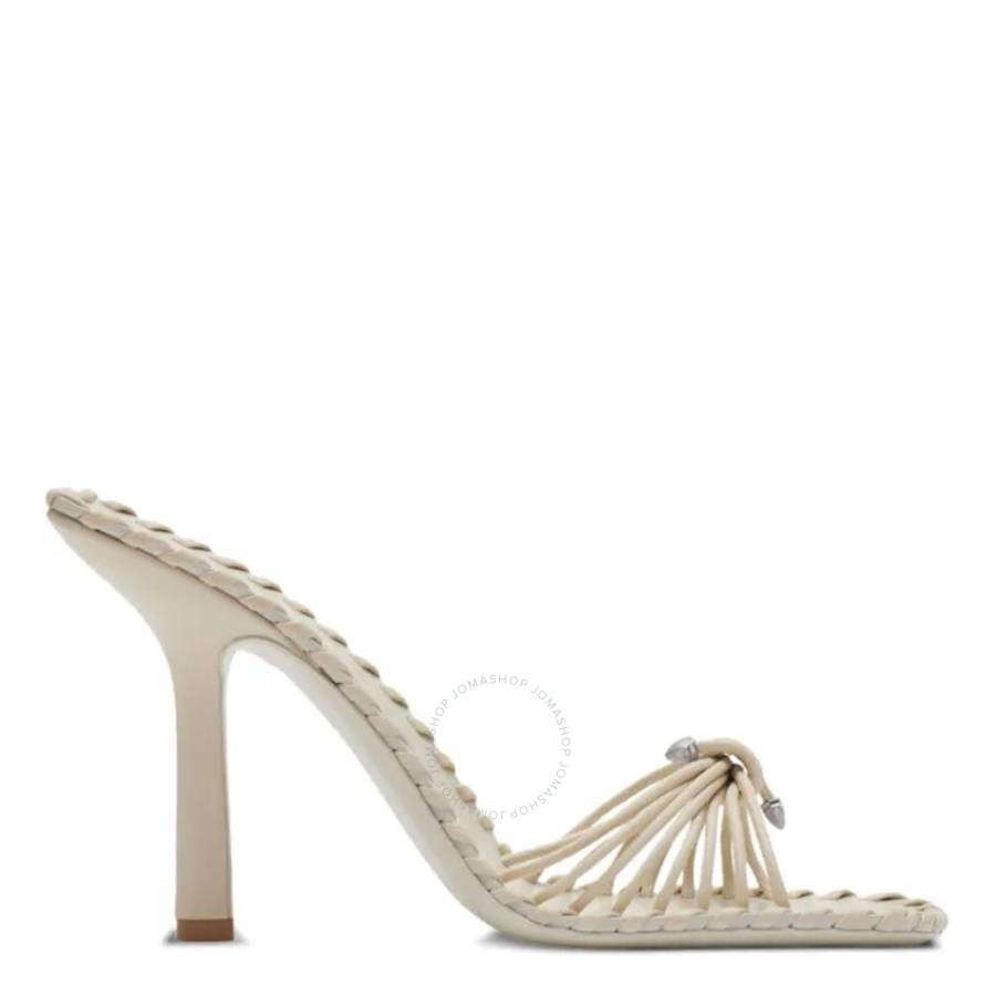 Burberry Ladies Sandals. SKU: 8090188. Color: Soap. Burberry Leather Rumba Heeled Sandals. A pair of Leather Rumba Sandals, expertly crafted in Italy from supple nappa leather, featuring a sleek stiletto heel and intricate whipstitch detailing. The design is accented with shield hardware on the straps, while the leather sole is embossed with the signature Equestrian Knight Design. Finished with a sophisticated squared toe and a leather insole for refined elegance. Heel height: 10.5cm/4.1in. 100% lambskin. Made in Italy. Please visit the brand website for sizing information. GENERAL Brand Type: Designer INFORMATION Brand: Burberry Model: 8090188 Gender: Womens DETAILS Category: Sandals Shoe Style: Heels Shoe Style: Heels Color: Soap Shoe Vamp Style: Slip-on Upper Material: Lambskin Sole Material: Leather Heel Size: 10.5cm/4.1in ADDITIONAL INFO Jomashop Sku: -8090188N Department: Shoes