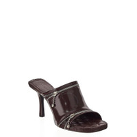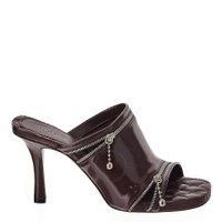 Burberry Ladies Sandals. SKU: 8080254. Color: Poison. Burberry Leather Zipper Stiletto Mule Sandals. These sandals are crafted from calf leather and feature silver-tone hardware, decorative zip detailing, and a square open toe. The slip-on style is complemented by a branded footbed, 85mm high heel, and a leather sole for added comfort and style. Made in Italy. Please visit the brand website for sizing information. GENERAL Brand Type: Designer INFORMATION Brand: Burberry Model: 8080254 Gender: Womens DETAILS Category: Sandals Shoe Style: Mules Shoe Style: Mules Color: Poison Shoe Vamp Style: Slip-on Upper Material: Calfskin Sole Material: Leather ADDITIONAL INFO Jomashop Sku: -8080254N Department: Shoes
