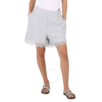 Burberry Ladies Bottoms. Fashion category: Shorts. SKU: 8029580. Color: Light Pebble Grey. Burberry Light Pebble Grey Lace And Cotton Shorts. This high-waist shorts from Burberry in loop-back cotton, features an elasticated waist, side slip pockets and a lace overlay with scalloped edging. 100% cotton. GENERAL Color: Light Pebble Grey INFORMATION Brand: Burberry Gender: Womens Model: 8029580 DETAILS Category: Bottoms Apparel Type: Shorts ADDITIONAL INFO Jomashop Sku: -8029580N Department: Apparel