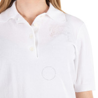 Burberry Ladies Tops. Fashion category: Shirts & Blouses. SKU: 8095289. Color: Chalk. Burberry Logo-Applique Polo Shirt. This cotton blend shirt features an applique logo and the signature Equestrian Knight motif. It has a polo collar, front button placket, short sleeves, and a straight hem for a clean, classic look. Cotton 90%, Polyamide 8%, Elastane 2% Made in Italy. GENERAL Brand Type: Designer Color: Chalk INFORMATION Brand: Burberry Gender: Womens Model: 8095289 DETAILS Category: Tops Apparel Type: Shirts & Blouses ADDITIONAL INFO Jomashop Sku: -8095289N Department: Clothing