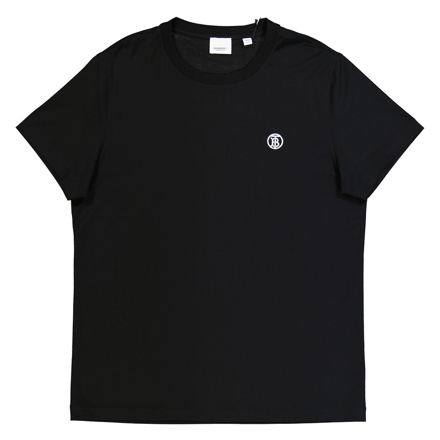 Burberry Men's Tops. Fashion category: T-Shirts & Henleys. SKU: 8052965. Color: Black. This Burberry stretch-cotton T-shirt is a timeless tribute to the brand’s founder, Thomas Burberry, featuring the iconic TB monogram embroidered on the chest in white. The minimalistic design speaks to the label’s heritage while maintaining a modern, clean aesthetic. Crafted from soft cotton, this imported T-shirt offers superior comfort and breathability. Key details include a classic crew neck, short sleeves, and a straight hem. Cotton 100%. GENERAL Color: Black INFORMATION Brand: Burberry Gender: Mens Model: 8052965 DETAILS Category: Tops Apparel Type: T-Shirts & Henleys ADDITIONAL INFO Jomashop Sku: -8052965N Department: Clothing