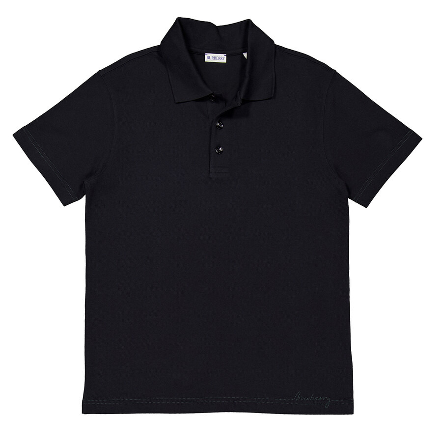 Burberry Men's Tops. Fashion category: T-Shirts & Henleys. SKU: 8094280. Material: Cotton. Color: Black. Burberry Logo Embroidered Straight Hem Cotton Polo Shirt. This cotton polo shirt features a pique weave, an embroidered logo on the front, mother-of-pearl buttons, a polo collar, a short front button fastening, short sleeves, and a straight hem. 100% Cotton. Made in Portugal. GENERAL Color: Black INFORMATION Brand: Burberry Gender: Mens Model: 8094280 DETAILS Category: Tops Apparel Type: T-Shirts & Henleys Material: Cotton ADDITIONAL INFO Jomashop Sku: -8094280N Department: Clothing
