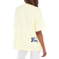 Burberry Ladies Tops. Fashion category: T-Shirts & Henleys. SKU: 8083630. Burberry Logo Knight Print T-Shirt. This shirt features a ribbed crew neck, short sleeves, straight hem, relaxed fit and an Equestrian Knight graphic on the back. 100% Cotton. Made in Portugal. GENERAL Brand Type: Designer Color: Sherbet INFORMATION Brand: Burberry Gender: Womens Model: 8083630 DETAILS Category: Tops Apparel Type: T-Shirts & Henleys Material: Cotton ADDITIONAL INFO Jomashop Sku: -8083630N Department: Clothing