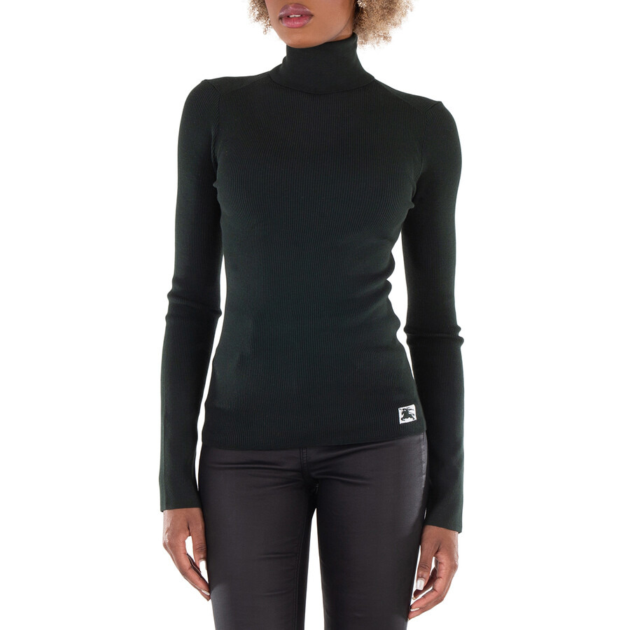 Burberry Ladies Tops. Fashion category: T-Shirts & Henleys. SKU: 8077658. Burberry Long Sleeve Equestrian Knight Wool Jumper. This jumper features a ribbed knit, the signature Equestrian Knight motif, a logo patch on the side, a high neck, long sleeves, and a straight hem. 100% Wool. GENERAL Brand Type: Designer Color: Vine INFORMATION Brand: Burberry Gender: Womens Model: 8077658 DETAILS Category: Tops Apparel Type: T-Shirts & Henleys Material: Wool ADDITIONAL INFO Jomashop Sku: -8077658N Department: Clothing