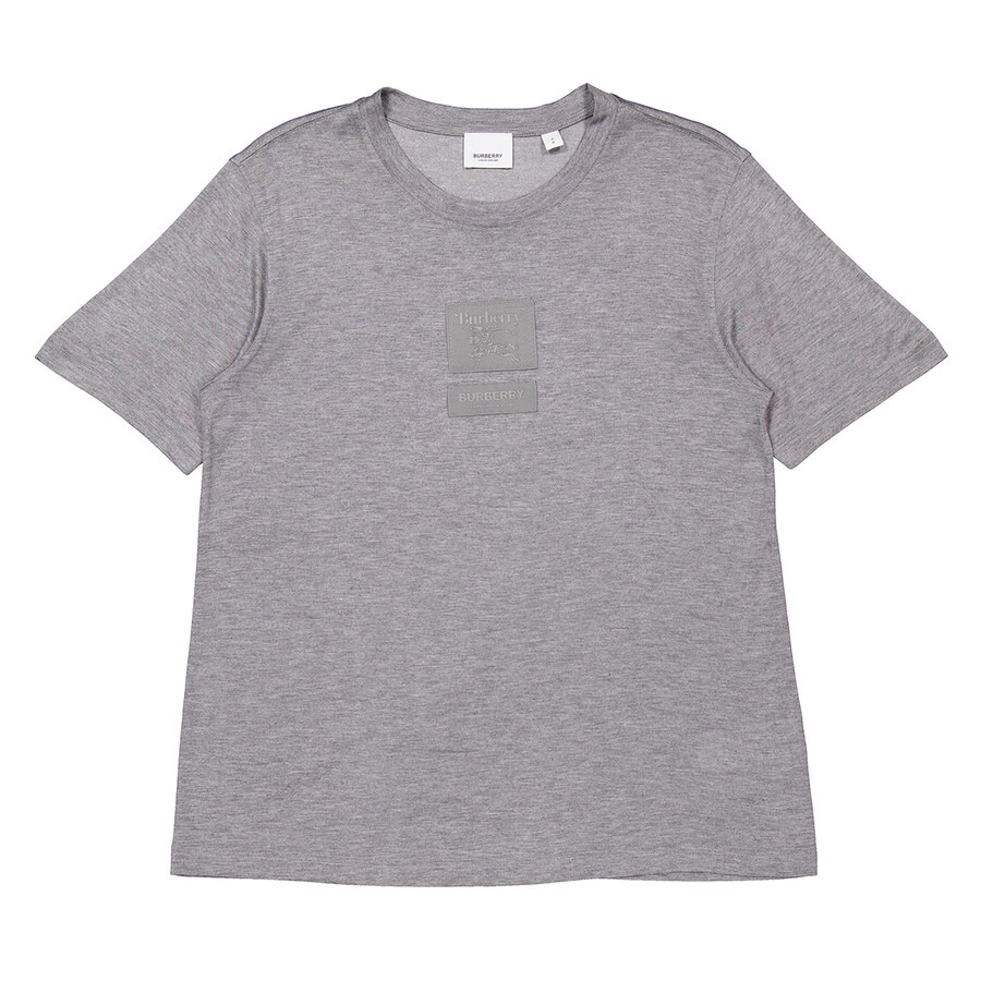 Burberry Ladies Tops. Fashion category: T-Shirts & Henleys. SKU: 8073047. Color: Grey Melange. Burberry Margot EKD Logo-Patch T-Shirt. This t-shirt features a logo patch and Equestrian Knight design, with a crew neck, short sleeves, and a straight hem. 81% viscose, 19% silk, Made in Portugal. GENERAL Brand Type: Designer Color: Grey Melange INFORMATION Brand: Burberry Gender: Womens Model: 8073047 DETAILS Category: Tops Apparel Type: T-Shirts & Henleys Material: Silk, Viscose ADDITIONAL INFO Jomashop Sku: -8073047N Department: Clothing