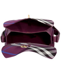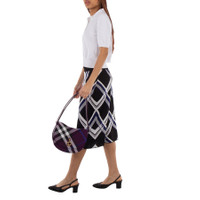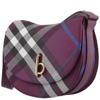 Burberry Ladies Shoulder Bag. SKU: 8093062. Barcode: 5045706795978. Color: Pansy. Size: 26 x 9.5 x 20.5cm/10.2 x 3.7 x 8.1in. Burberry Medium Rocking Horse Bag. Crafted from a cotton blend jacquard-woven with the Burberry Check, this bag features an adjustable leather strap, a foldover flap with 'B' closure, and two interior slip pockets. It also includes an exterior slip pocket with magnetic closure, hand-painted edges, a curved shape, and is finished with brushed metal hardware. 65% polyester, 35% cotton. Made in Italy. GENERAL Size Info: 26 x 9.5 x 20.5cm/10.2 x 3.7 x 8.1in Color: Pansy INFORMATION Brand: Burberry Gender: Womens Model: 8093062 DETAILS Material: Cotton, Polyester Closure: Flap ADDITIONAL INFO UPC Code: 5045706795978 Jomashop Sku: Z-GS83D Department: Bags Category: Shoulder Bag