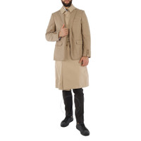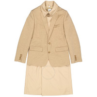 Burberry Men's Outerwear. Fashion category: Coats & Jackets. SKU: 4559091. Color: Soft Fawn. Burberry Men's Blazer Detail Cotton Twill Reconstructed Trench Coat In Soft Fawn. A Burberry cotton-twill trench coat reconstructed with a jersey blazer overlay, featuring a hook-and-eye collar closure, D-ring belt, button-through welt pockets and a double-breasted closure. The blazer features a single-breasted closure, notch lapels, chest welt pocket, flap pockets, working cuffs, double vent. Outer: 100% cotton. Made in Italy. GENERAL Color: Soft Fawn INFORMATION Brand: Burberry Gender: Mens Model: 4559091 DETAILS Category: Outerwear Apparel Type: Coats & Jackets ADDITIONAL INFO Jomashop Sku: -4559091N Department: Apparel