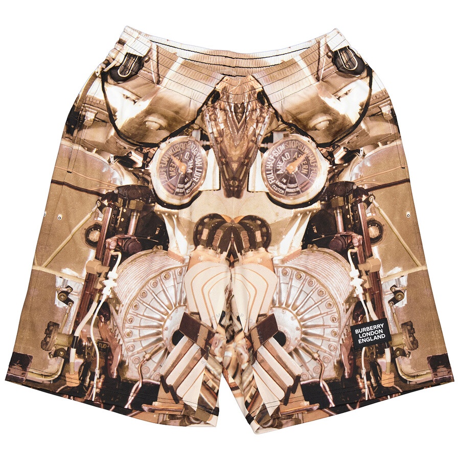 Burberry Men's Bottoms. Fashion category: Shorts. SKU: 8024634. Color: Bronze Ip Pttn. Burberry Men's Bronze Stretton Wilford Mesh Shorts. Made from breathable mesh fabric which is designed with a runway Submarine print and features side slip pockets, silicone patch with raised Burberry lettering at front and elasticated waistband. 100% polyester. GENERAL Color: Bronze INFORMATION Brand: Burberry Gender: Mens Model: 8024634 DETAILS Category: Bottoms Apparel Type: Shorts ADDITIONAL INFO Jomashop Sku: -8024634N Department: Apparel