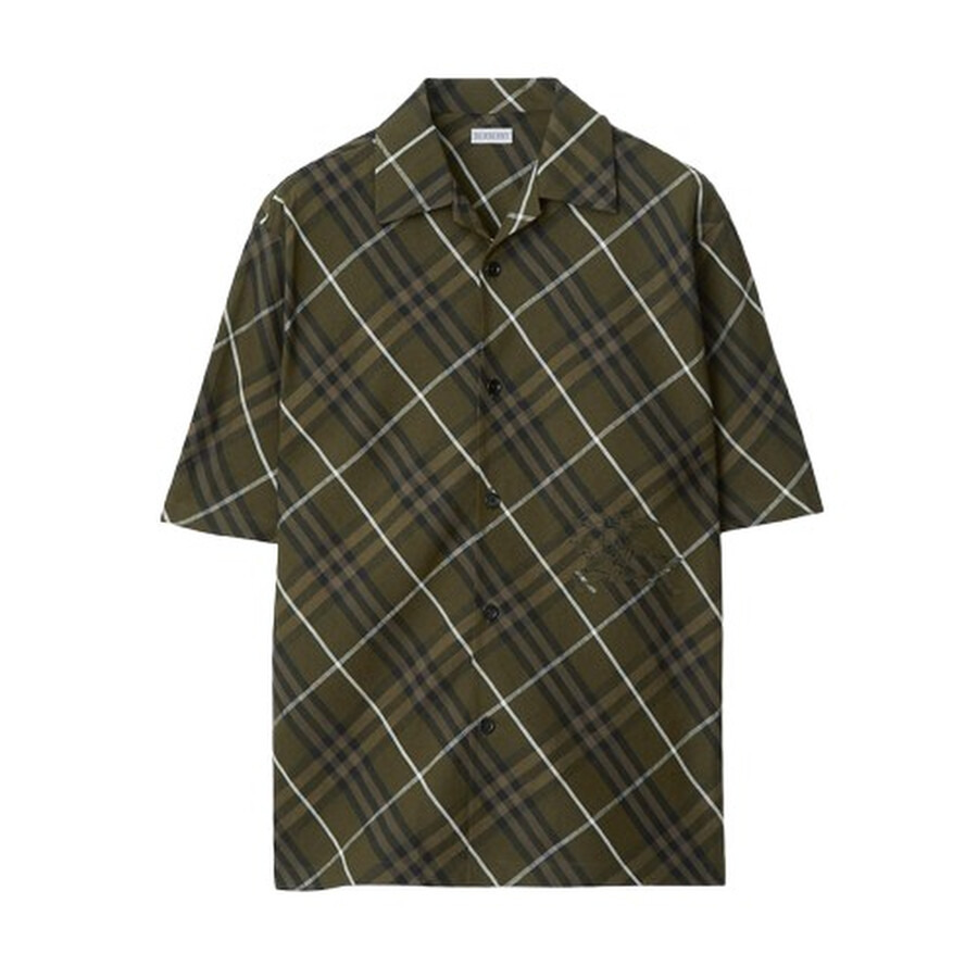 Burberry Men's Tops. Fashion category: Polo Shirts. SKU: 8090291. Color: Jungle Ip Check. Burberry Men's Check Linen Shirt. A short-sleeved shirt crafted from Italian-woven linen, featuring the iconic Burberry Check and an appliqued Equestrian Knight Design on the front. Designed with a spread collar, button closure, and straight hem, this style is cut for an oversized fit for a relaxed, modern look. 100% linen. GENERAL Brand Type: Designer Color: Jungle Ip Check INFORMATION Brand: Burberry Gender: Mens Model: 8090291 DETAILS Category: Tops Apparel Type: Polo Shirts Material: Linen ADDITIONAL INFO Jomashop Sku: -8090291N Department: Clothing