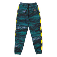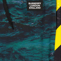 Burberry Men's Deep Teal Tape Detail Sea Print Cotton Trackpants