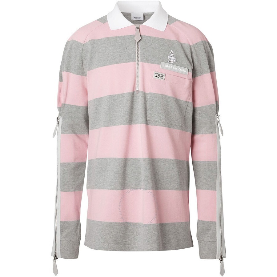 Burberry Men's Tops. SKU: 4563721. Color: Pale Pink Ip Pattern. Burberry Men's Long-sleeved Zip Detail Striped Polo Shirt. This shirt features a classic polo collar, a striped print, a front placket, a chest pocket, long length raglan sleeves, side zip details, ribbed cuffs, a straight hem and a branded silicone logo patch at the chest. Materials: Cotton, Silicone. Made in Italy. GENERAL Color: Pale Pink Ip Pattern INFORMATION Brand: Burberry Gender: Mens Model: 4563721 DETAILS Category: Tops Apparel Type: Polo Shirts Material: Cotton ADDITIONAL INFO Jomashop Sku: -4563721N Department: Apparel