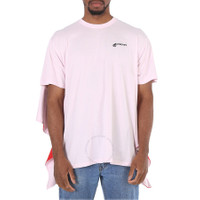 Burberry Men's Pale Pink Striped Cape Detail Cotton Oversized T-shirt