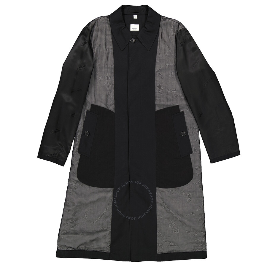 Burberry Men's Outerwear. Fashion category: Coats & Jackets. SKU: 4558208. Color: Black. Burberry Men's Panelled Cotton Gabardine Car Coat In Black. This coat from Burberry features a concealed single-breasted closure, long sleeves, button through welt pockets, sheer geometric panels, contrasting logo tagged sleeves, a mid-length and a classic collar. Made in Italy. GENERAL Color: Black Collection Name: Runway INFORMATION Brand: Burberry Series: Runway Gender: Mens Model: 4558208 DETAILS Category: Outerwear Apparel Type: Coats & Jackets ADDITIONAL INFO Jomashop Sku: -4558208N Department: Apparel