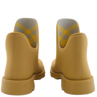 Burberry Men's Boots. SKU: 8074608. Color: Manilla. Burberry Water-Resistant Pebbled Rubber Rainboots. This rain boot is water-resistant with a pebbled texture and features a logo at the sole. It is ankle-length with an oversized tongue, a round toe, and a ridged rubber sole. 100% Synthetic Rubber. Made in Italy. Please visit the brand website for sizing information. INFORMATION Brand: Burberry Model: 8074608 Gender: Mens DETAILS Category: Boots Shoe Style: Ankle boots Shoe Style: Ankle boots Color: Manilla Shoe Vamp Style: Lace-up Sole Material: Rubber ADDITIONAL INFO Jomashop Sku: -8074608N Department: Shoes