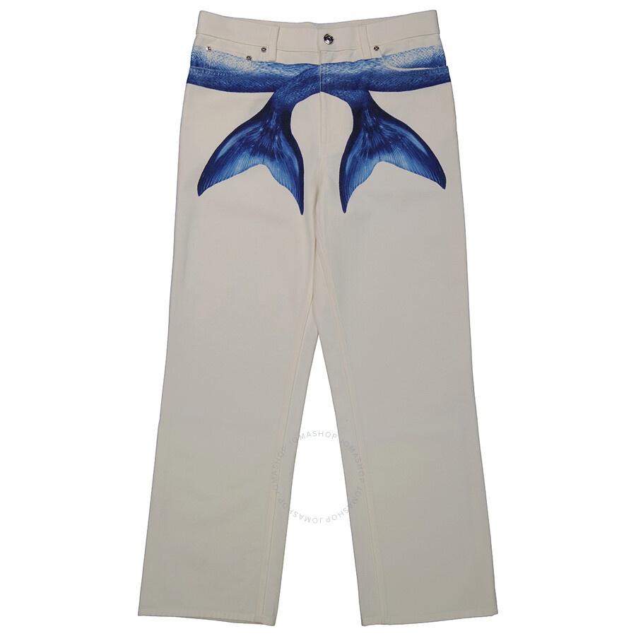 Burberry Men's Bottoms. Fashion category: Jeans & Denim. SKU: 4567391. Color: White. Burberry Men's White Mermaid Tail Printed Cotton-Denim Jeans. This cotton-denim jeans by Burberry featuring classic five pockets, zip fly. front button fastening, belt loops, straight leg and a graphic print. 100% Cotton. Made in Italy. GENERAL Color: White INFORMATION Brand: Burberry Gender: Mens Model: 4567391 DETAILS Category: Bottoms Apparel Type: Jeans & Denim Material: Cotton ADDITIONAL INFO Jomashop Sku: -4567391N Department: Apparel
