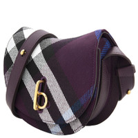 Burberry Ladies Crossbody. SKU: 8095061. Barcode: 5045707314468. Color: Pansy. Size: 7.5 x 2.4 x 6.3in. Burberry Mini Rocking Horse Bag. Crafted from a cotton blend and jacquard-woven with the Burberry Check, this bag features an adjustable leather strap, a foldover flap with a ‘B’ closure, hand-painted edges, and a leather lining. Its curved shape and structured silhouette are finished with a ‘B’ closure at the flap. 65% polyester, 35% cotton. GENERAL Size Info: 7.5 x 2.4 x 6.3in Color: Pansy INFORMATION Brand: Burberry Gender: Womens Model: 8095061 DETAILS Material: Cotton, Polyester Closure: Flap ADDITIONAL INFO UPC Code: 5045707314468 Jomashop Sku: Z-9GXLD Department: Bags Category: Crossbody