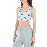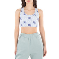 Burberry Ladies Tops. Fashion category: Active & Lounge. SKU: 8072022. Color: Navy Ip Pattern. Burberry Monogram And Ekd Logo Cropped Top. This crop top features a monogram print, stretch design, round neck, sleeveless cut, and a cropped, slip-on style. Polyamide 59%, Elastane 41%. GENERAL Brand Type: Designer Color: Navy Ip Pattern INFORMATION Brand: Burberry Gender: Womens Model: 8072022 DETAILS Category: Tops Apparel Type: Active & Lounge Material: Polyamide:Elastane ADDITIONAL INFO Jomashop Sku: -8072022N Department: Clothing
