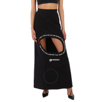 Burberry Ladies Bottoms. Fashion category: Skirts. SKU: 4564319. Color: Black. Burberry Montage Print Step-through Skirt. This black stretch cotton skirt from Burberry features a high waist, stretch fit, long length, white printed logo and white excerpts from William Shakespeare’s 'Tempest' and ‘Troilus and Cressida. Materials: 82% cotton, 18% elastane. GENERAL Color: Black INFORMATION Brand: Burberry Gender: Womens Model: 4564319 DETAILS Category: Bottoms Apparel Type: Skirts ADDITIONAL INFO Jomashop Sku: -4564319N Department: Apparel