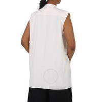 Logo Detail Sleeveless Silk Crepe de Chine Shirt