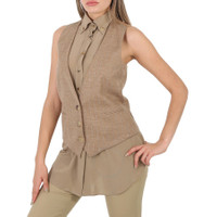 Burberry Pecan Melange Shirt Detail Wool Blend Waistcoat