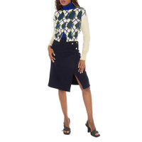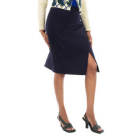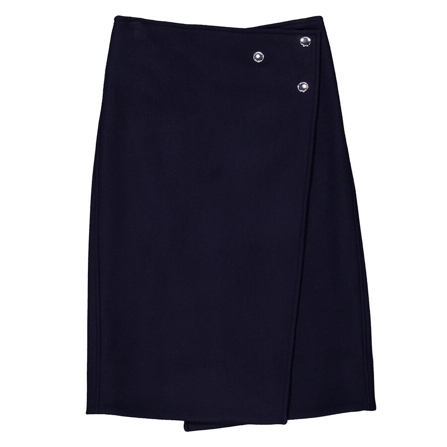Burberry Ladies Bottoms. Fashion category: Skirts. SKU: 8060904. Color: Dark Charcoal Blue. Burberry Peony Cashmere Blend Wrap Skirt. A luxurious cashmere skirt designed with a chic wrap silhouette, secured with snap buttons for a modern touch. The mid-length cut offers an elegant and versatile look, perfect for effortless styling. 90% Wool, 10% Cashmere. GENERAL Brand Type: Designer Color: Dark Charcoal Blue INFORMATION Brand: Burberry Gender: Womens Model: 8060904 DETAILS Category: Bottoms Apparel Type: Skirts Material: Cashmere, Wool ADDITIONAL INFO Jomashop Sku: -8060904N Department: Clothing