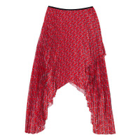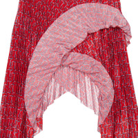 Asymmetric printed plissé-twill skirt