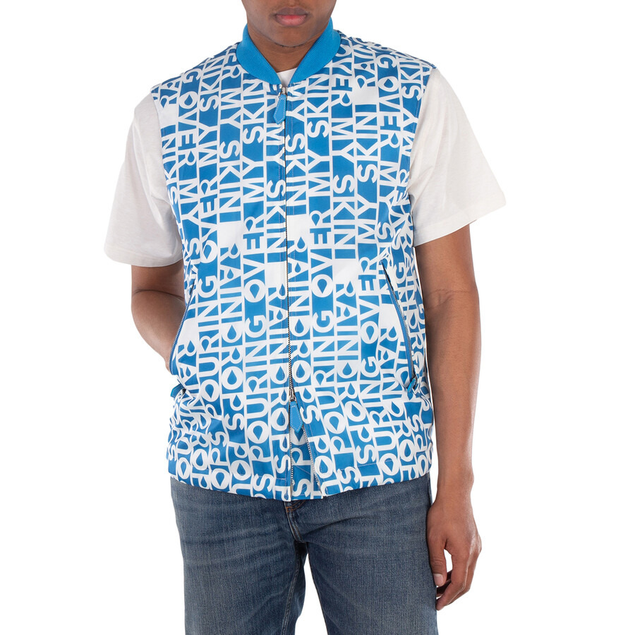 Burberry Men's Outerwear. Fashion category: Vests. SKU: 8053202. Color: White Ip Pattern. Burberry introduces a rainwear capsule collection that merges raindrop graphics with their signature 2D interlocking monogram print. This innovative line explores bold, illustrative patterns, drawing inspiration from the fluidity of shifting weather. Made from polyamide, the vest showcases the distinctive raindrop logo and features a zip-front closure, a standing collar, and side zip pockets. The sleeveless design offers both style and functionality, crafted entirely from durable polyamide for a sleek, modern look. 100% Polyamide. GENERAL Color: White Ip Pattern INFORMATION Brand: Burberry Gender: Mens Model: 8053202 DETAILS Category: Outerwear Apparel Type: Vests Material: Polyamide ADDITIONAL INFO Jomashop Sku: -8053202N Department: Clothing