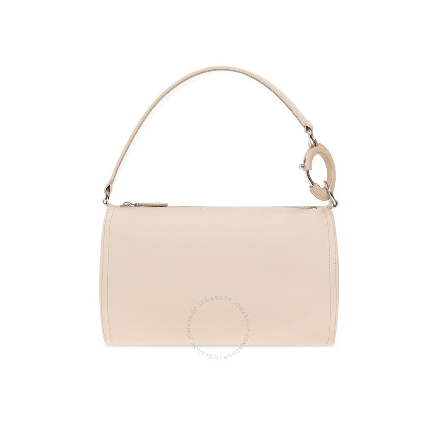 Burberry Ladies Shoulder Bag. SKU: 8053350. Color: Soft Fawn. Size: H19cm x W31cm. Burberry Rhombi Small Shoulder Bag. Crafted from cotton canvas, this shoulder bag features a silver-tone logo print, a decorative shoulder strap with a round snap hook, silver-tone metal hardware, and one internal compartment with a slip pocket. Material: 100% Cotton. Made in Italy. GENERAL Size Info: H19cm x W31cm Color: Soft Fawn INFORMATION Brand: Burberry Gender: Womens Model: 8053350 DETAILS Closure: Zip-Up ADDITIONAL INFO UPC Code: 5045628401957 Jomashop Sku: Z-H9GK2 Department: Bags Category: Shoulder Bag