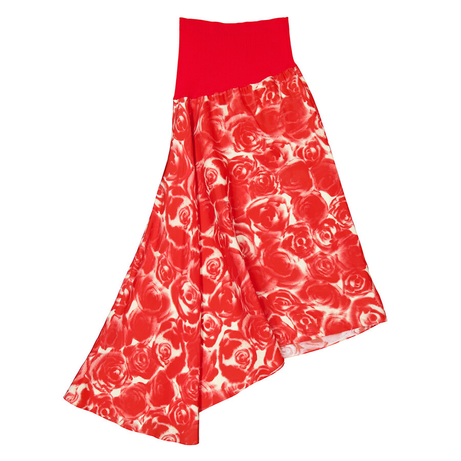 Burberry Rose-Print Asymmetric Silk Skirt