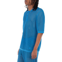 Burberry Men's Tops. Fashion category: T-Shirts & Henleys. SKU: 8071628. Color: Bright Cerulean Blue. Burberry Short Sleeve Mesh T-Shirt. This T-shirt features a polo collar with a short button fastening, short sleeves and mesh detailing. 100% Viscose, Trim: 67% Viscose, 33% Polyamide. GENERAL Color: Bright Cerulean Blue INFORMATION Brand: Burberry Gender: Mens Model: 8071628 DETAILS Category: Tops Apparel Type: T-Shirts & Henleys Material: Polyamide, Viscose ADDITIONAL INFO Jomashop Sku: -8071628N Department: Clothing