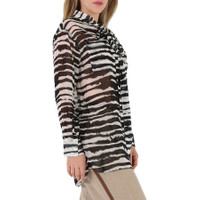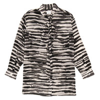 Burberry Ladies Tops. Fashion category: Shirts & Blouses. SKU: 4564508. Color: Monochrome Ip Pttn. Burberry Silk Chiffon Watercolour Print Blouse. This watercolour zebra stripe blouse features a front button-down placket, long sleeves, 1 chest patch pocket and buttoned cuffs. GENERAL Color: Monochrome Ip Pttn INFORMATION Brand: Burberry Gender: Womens Model: 4564508 DETAILS Category: Tops Apparel Type: Shirts & Blouses ADDITIONAL INFO Jomashop Sku: -4564508N Department: Apparel