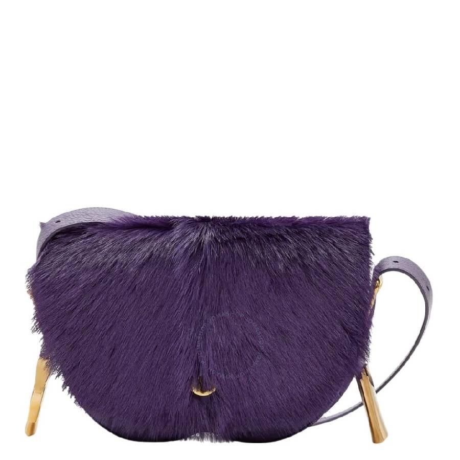 Burberry Ladies Satchel. SKU: 8075510. Color: Purple. Size: 9.8 x 2.6 x 6.9in. Burberry Small Calf Hair Chess Satchel. Crafted in Italy, this structured bag combines luxurious full-grain calf leather with soft goat hair for a distinctive texture and refined look. Its unique B-shaped base adds architectural elegance, while the brushed metal knight and rook charms inspire its name, lending a subtle nod to classic chess motifs. Designed for versatility, the adjustable leather strap allows it to be worn as either a shoulder or crossbody bag. Max. strap drop: 45cm/17.7in. Outer: 100% calf leather. Trim: 100% goat hair. Made in Italy. GENERAL Size Info: 9.8 x 2.6 x 6.9in Brand Type: Designer Color: Purple INFORMATION Brand: Burberry Gender: Womens Model: 8075510 DETAILS Material: Goat Hair, Calfskin DIMENSIONS Measurement: 9.8 x 2.6 x 6.9in ADDITIONAL INFO UPC Code: 5045704120185 Jomashop Sku: Z-K3K5Y Department: Bags Category: Satchels