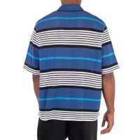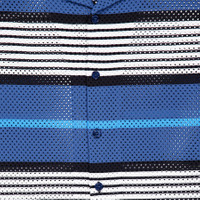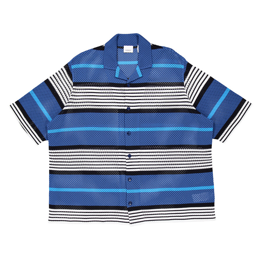 Burberry Men's Tops. Fashion category: Shirts & Blouses. SKU: 8067882. Color: Rich Navy. Burberry Striped Print Nylon Loose Shirt. This shirt is crafted from sporty nylon mesh and features a spread collar, short sleeves, a straight hem, and a loose fit. It is printed with Burberry's signature stripes, adding a distinctive touch to the design. 100% polyamide. Made in Italy. GENERAL Brand Type: Designer Color: Rich Navy INFORMATION Brand: Burberry Gender: Mens Model: 8067882 DETAILS Category: Tops Apparel Type: Shirts & Blouses Material: Polyamide ADDITIONAL INFO Jomashop Sku: -8067882N Department: Clothing