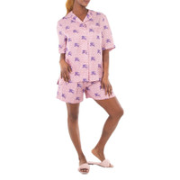 Burberry Ladies Tops. Fashion category: Shirts & Blouses. SKU: 8072267. Material: Silk. Color: Deep Amethyst Ip Pat. Burberry Tabi Equestrian Knight TB Monogram Print Silk Pyjama Shirt. This shirt is patterned with the TB Monogram and Equestrian Knight Design. It features mother-of-pearl buttons, short sleeves, a revere collar, and chest patch pockets. 100% Silk Made in Italy. GENERAL Color: Deep Amethyst Ip Pat INFORMATION Brand: Burberry Gender: Womens Model: 8072267 DETAILS Category: Tops Apparel Type: Shirts & Blouses Material: Silk ADDITIONAL INFO Jomashop Sku: -8072267N Department: Clothing