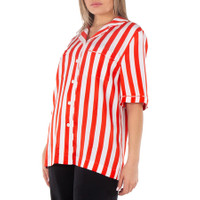 Burberry Ladies Tops. Fashion category: Shirts & Blouses. SKU: 8071333. Material: Silk. Color: Bright Chili Red Ip. Burberry Tabi Striped Silk Pyjama Shirt. This shirt features a stripe pattern, a soft collar, button closure, and patch pockets. 100% Silk. GENERAL Color: Bright Chili Red Ip INFORMATION Brand: Burberry Gender: Womens Model: 8071333 DETAILS Category: Tops Apparel Type: Shirts & Blouses Material: Silk ADDITIONAL INFO Jomashop Sku: -8071333N Department: Clothing