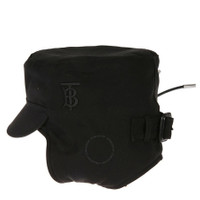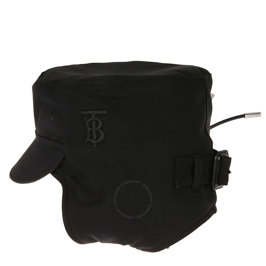 Burberry Ladies Hats. Fashion category: Hats. SKU: 8048740. Material: Cotton. Color: Black. Burberry TB Monogram Motif Cotton Hat. This trapper hat is made from Yorkshire-woven cotton gabardine and features a buckle detail. It is lined with check wool cashmere and embroidered with the TB Monogram. The buckle is made of calf leather, and the hat has an adjustable cord strap. Outer: 100% cotton; Trim: 100% leather;Lining: 89% wool, 10% cashmere, 1% other fibres. Made in Italy. GENERAL Color: Black INFORMATION Brand: Burberry Gender: Womens Model: 8048740 DETAILS Category: Hats Apparel Type: Hats Material: Cotton ADDITIONAL INFO Jomashop Sku: -8048740N Department: Fashion Accessories